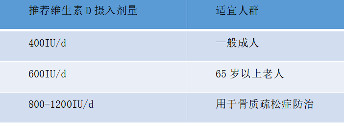 表1 不同年齡人群維生素D推薦劑量