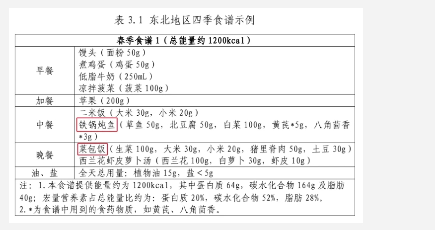 例如,東北地區(qū)的春季食譜有“鐵鍋燉魚”“菜包飯”,西北地區(qū)的食譜里有“臊子面”“油潑面”。