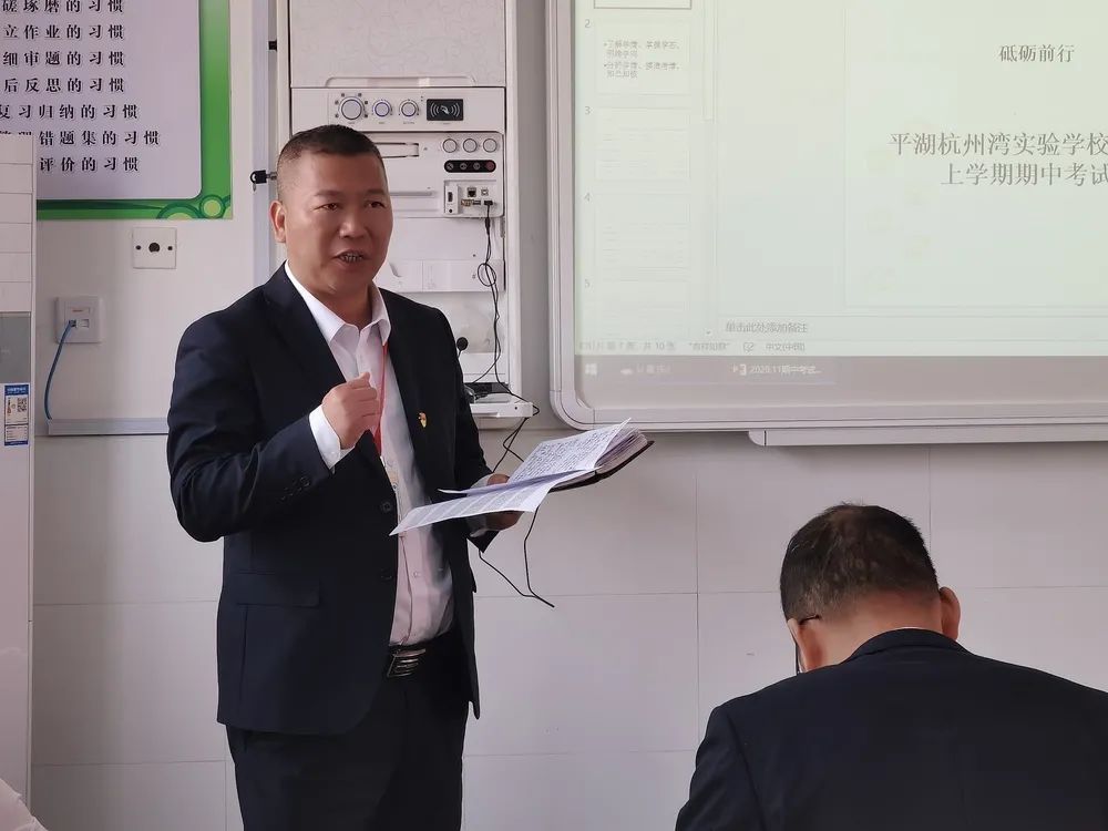 伴隨著初冬的腳步,11月8日上午,我校九年級(jí)全體教師在培英樓503教室召開了期中考試質(zhì)量分析會(huì)。平湖杭州灣實(shí)驗(yàn)學(xué)校理事長(zhǎng)肖家興博士、三方合作辦學(xué)總指揮曹躍平校長(zhǎng)及學(xué)校初高中部分行政領(lǐng)導(dǎo)參加了此次會(huì)議。