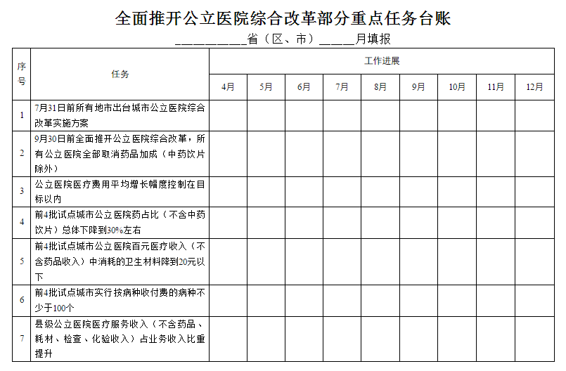 附件:全面推開(kāi)公立醫(yī)院綜合改革部分重點(diǎn)任務(wù)臺(tái)賬